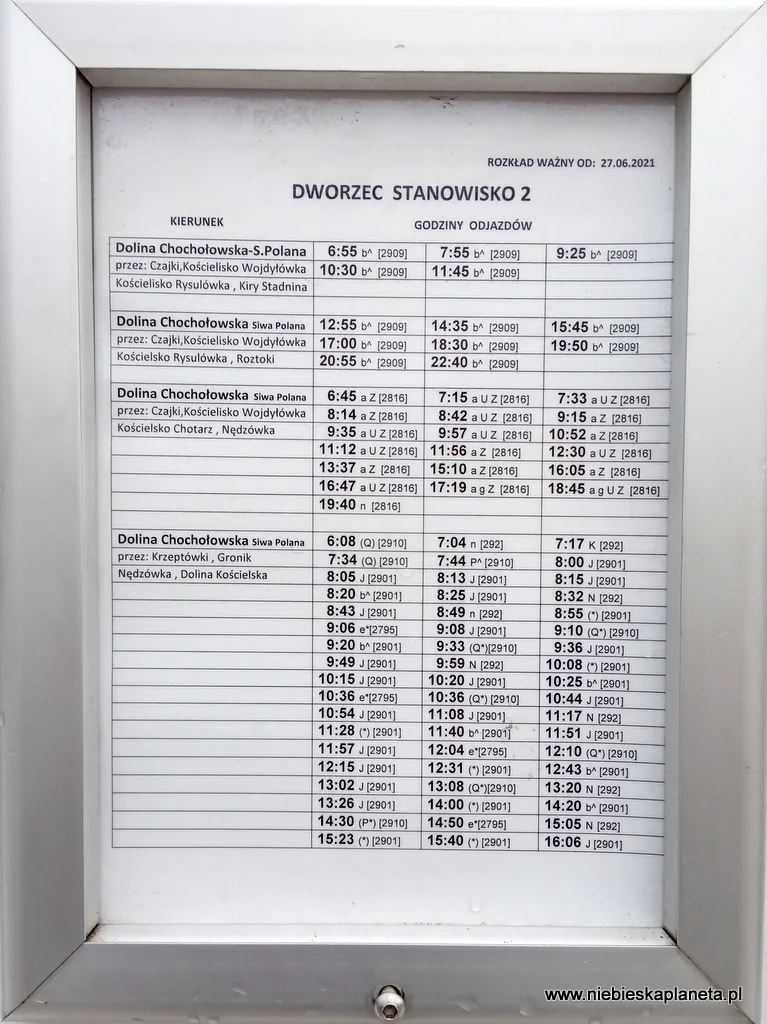 Godziny odjazdów busów do Doliny Chochołowskiej z Dworca PKP Zakopane