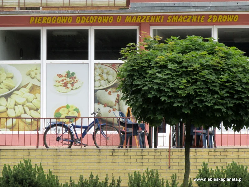 W pierwszej kolejności miejscem wartym polecenia jest bar "u Marzenki". Bardzo miła i rozmowna pani Marzenka zawsze nam coś ciekawego poleci np. wodoloty. Wodoloty to taka bardzo smaczna wariacja na temat kresowych kartaczy, zwanych na Litwie zepelinami. Również serwowane "u Marzenki" placki ziemniaczane nadziewane mięsem, przypominają litewskie ziemniaczane bliny. Ciekawe, że na zachodnich kresach obecnej Polski możemy popróbować potraw znanych z dawnych wschodnich kresów Rzeczpospolitej.